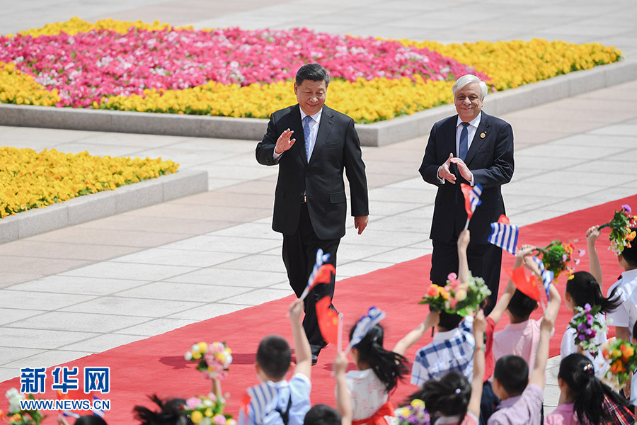 5月14日,國家主席習(xí)近平在北京人民大會(huì)堂同希臘總統(tǒng)帕夫洛普洛斯舉行會(huì)談。這是會(huì)談前,習(xí)近平在人民大會(huì)堂東門外廣場(chǎng)為帕夫洛普洛斯舉行歡迎儀式。 新華社記者 張領(lǐng) 攝