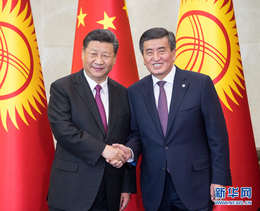6月13日,國家主席習近平在比什凱克同吉爾吉斯斯坦總統熱恩別科夫會談。 新華社記者 李學仁 攝