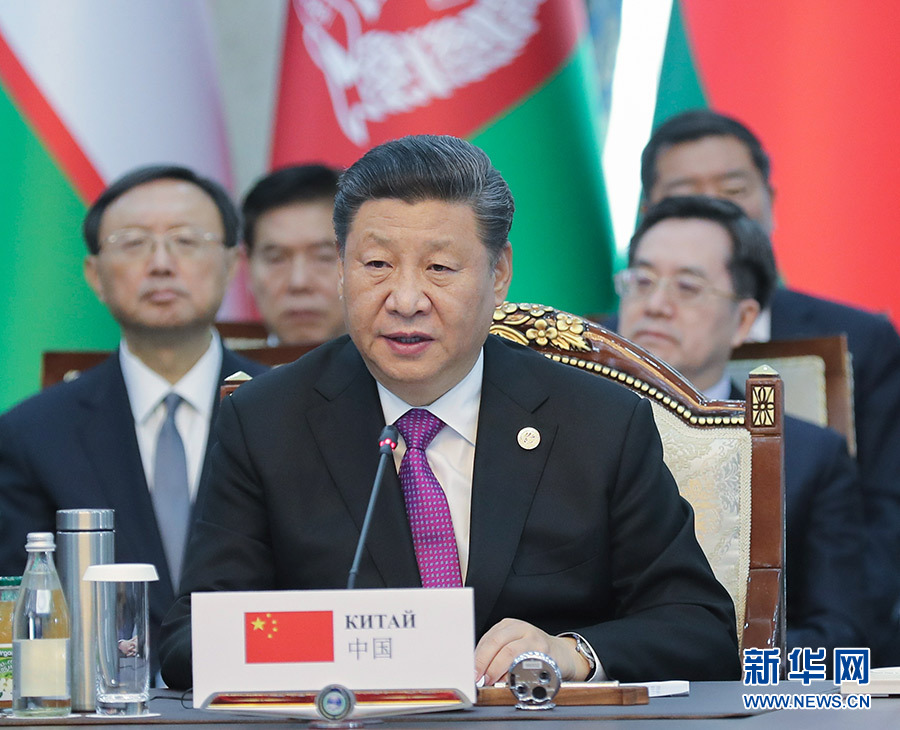 習近平在會上發(fā)表題為《凝心聚力 務實篤行 共創(chuàng)上海合作組織美好明天》的重要講話。