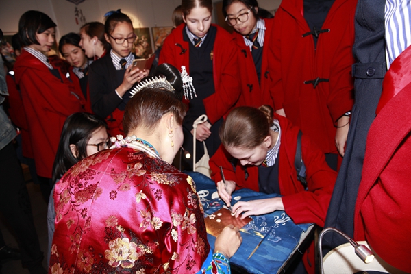 悉尼市圣凱瑟琳女子學(xué)校、圣艾夫斯高中和莫斯曼英格蘭教會小學(xué)學(xué)生體驗貴州非物質(zhì)文化遺產(chǎn)技藝。(圖片由悉尼中國文化中心提供)