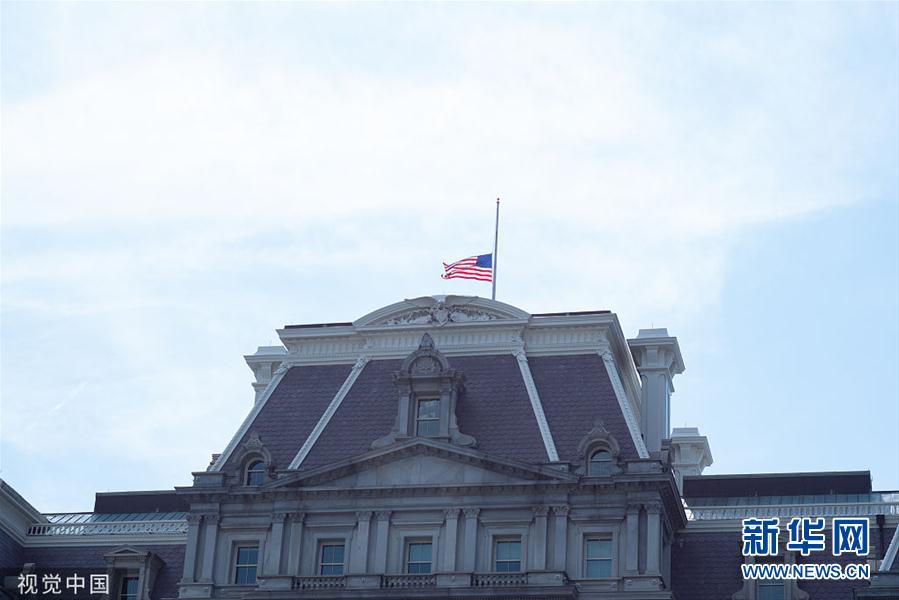 當地時間8月4日,美國華盛頓特區,美國國旗降半旗哀悼槍擊案遇難者。從3日上午至4日凌晨,美國得克薩斯州和俄亥俄州接連發生重大槍擊事件。美國總統特朗普4日下令全美降半旗致哀5天。(圖片來源:視覺中國)