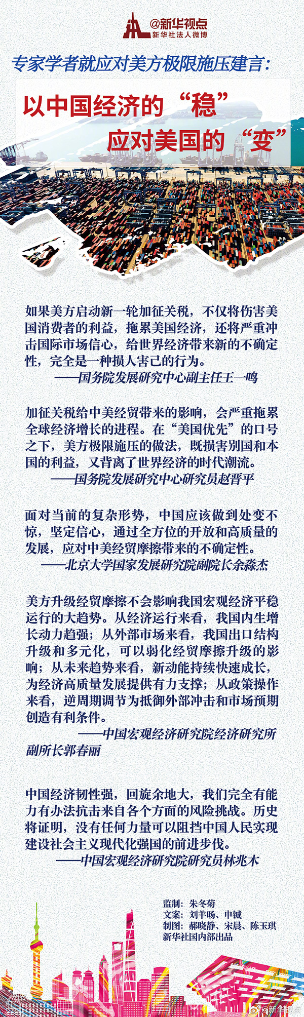 新華社北京8月7日電 題:以中國(guó)經(jīng)濟(jì)的“穩(wěn)”應(yīng)對(duì)美國(guó)的“變”——專(zhuān)家學(xué)者就應(yīng)對(duì)美方極限施壓建言