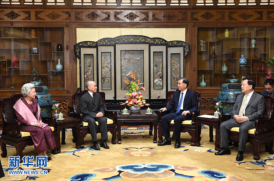 9月27日,全國政協主席汪洋在北京釣魚臺國賓館會見柬埔寨國王西哈莫尼和太后莫尼列。 新華社記者 饒愛民 攝