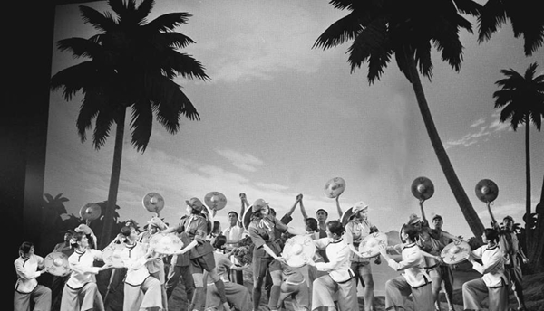 1973年2月10日,日本松山芭蕾舞團的演員和中國舞劇團的演員,在北京天橋劇場同臺演出《紅色娘子軍》。 新華社記者王景英攝