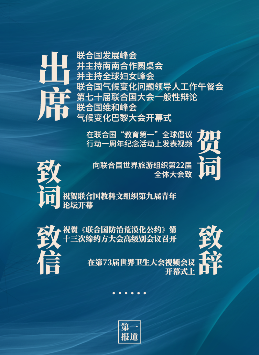 2013年以來,習主席通過出席聯合國活動、向聯合國活動致信函等方式,進一步深化中國同聯合國的合作,為維護世界和平、促進共同繁榮、完善全球治理貢獻中國智慧,注入中國動力。