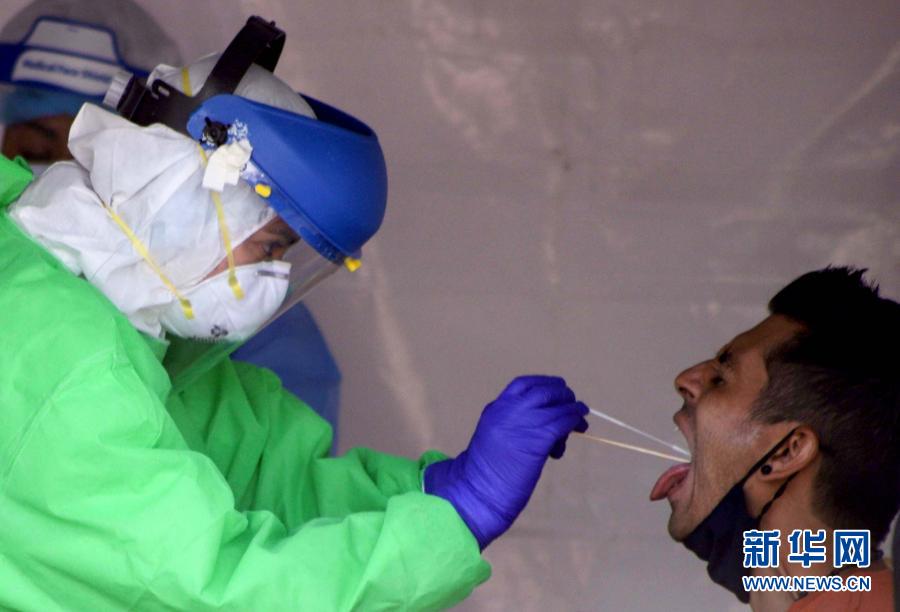 11月14日,在墨西哥首都墨西哥城,醫(yī)務人員為一名男子采集檢測樣本。