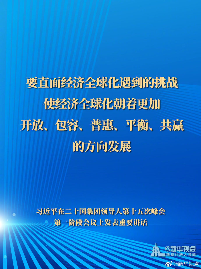 11月21日,國家主席習近平在二十國集團領導人第十五次峰會第一階段會議上發表重要講話。一起來看習主席的G20金句。
