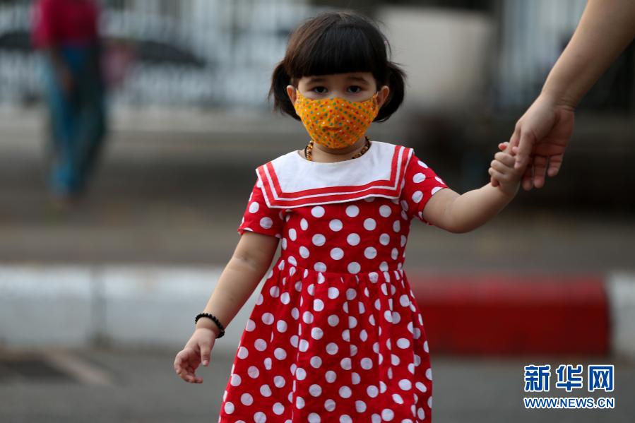 12月7日,在緬甸仰光,一名兒童戴著口罩外出。新華社發(吳昂 攝)