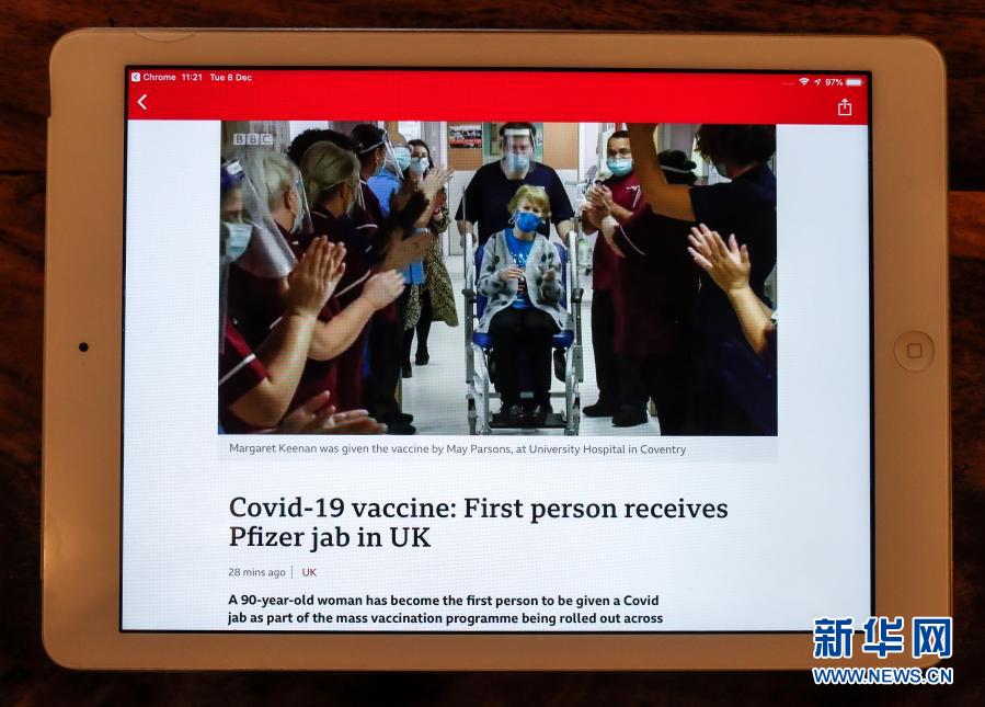 當日,英國開始接種新冠疫苗,將優先接種護理院人員、80歲以上人士以及一線醫護和社會工作者,然后才給其他人群提供接種服務,屆時還會按照年齡和感染風險來決定接種的先后順序。英國政府12月2日宣布,該國的監管機構已批準德國生物新技術公司與美國輝瑞制藥有限公司合作研發的新冠疫苗投入使用,這也是首款在英國獲批使用的新冠疫苗。