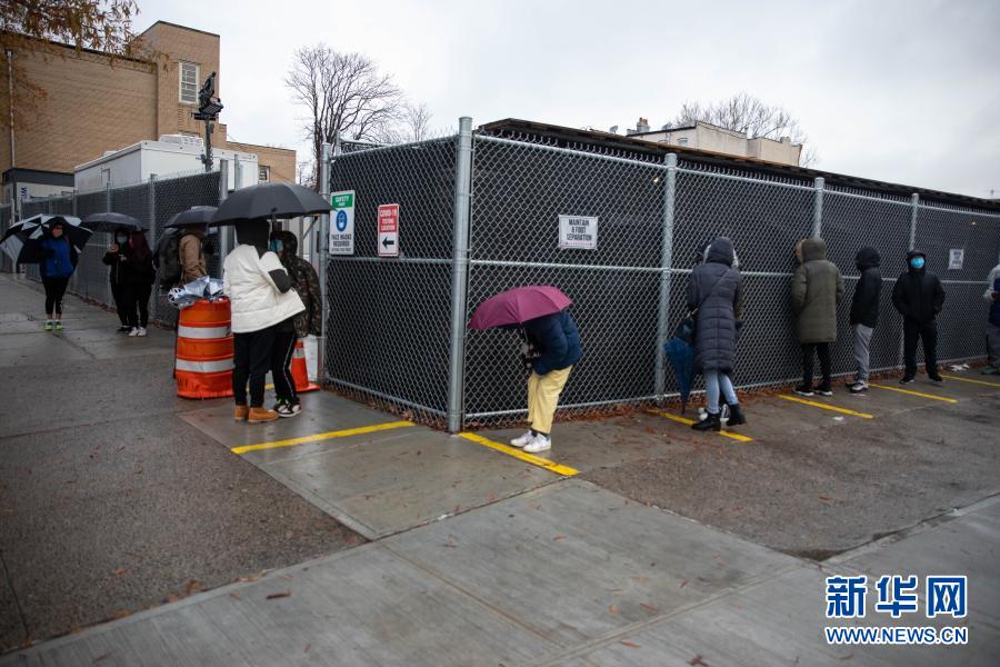 12月14日,在美國紐約,人們在一處新冠檢測點(diǎn)排隊(duì)檢測。新華社發(fā)(郭克 攝)