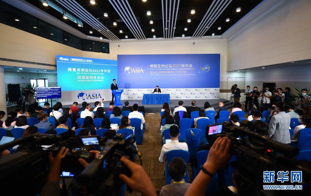 這是博鰲亞洲論壇2021年年會閉幕新聞發布會現場(4月21日攝)。新華社記者 郭程 攝