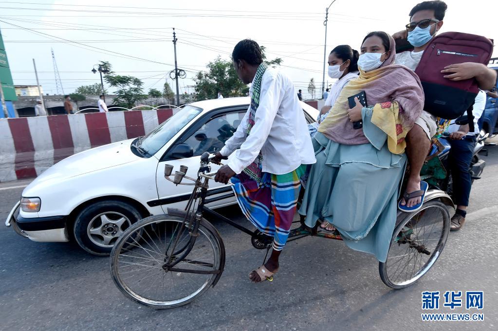 5月17日,返程人員抵達孟加拉國首都達卡后,乘坐三輪車前往城市其它地方。