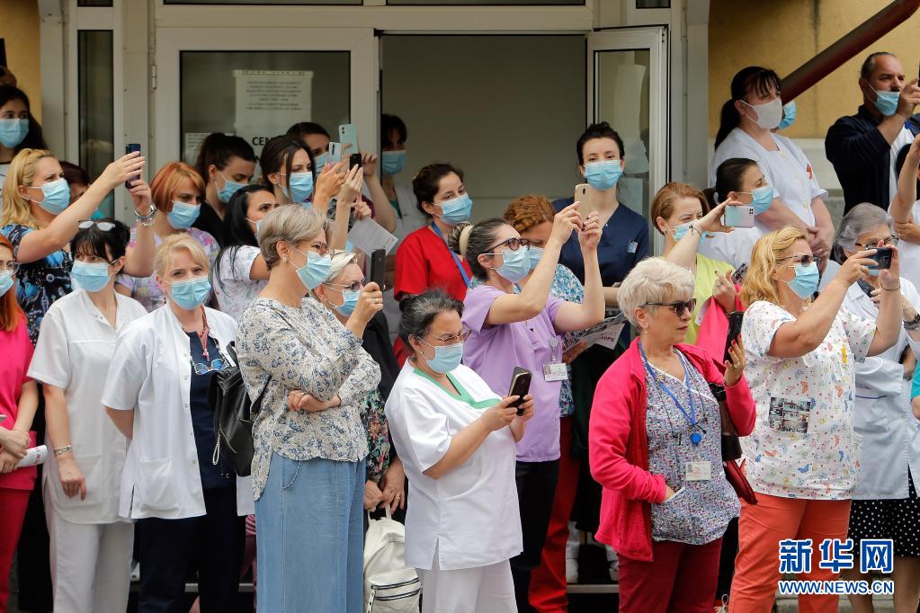 當日,羅馬尼亞首都布加勒斯特一個樂隊在該國一家傳染病醫院——馬太·巴爾什醫院演出,向抗擊新冠疫情的醫務工作者致謝。